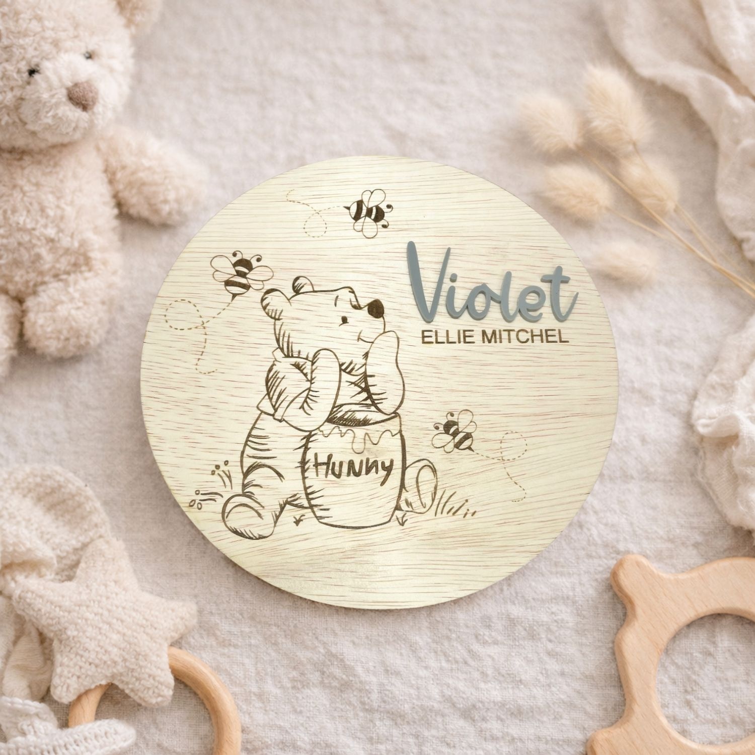 - Laser engraved 2D Baby Birth Announcement Plaque.